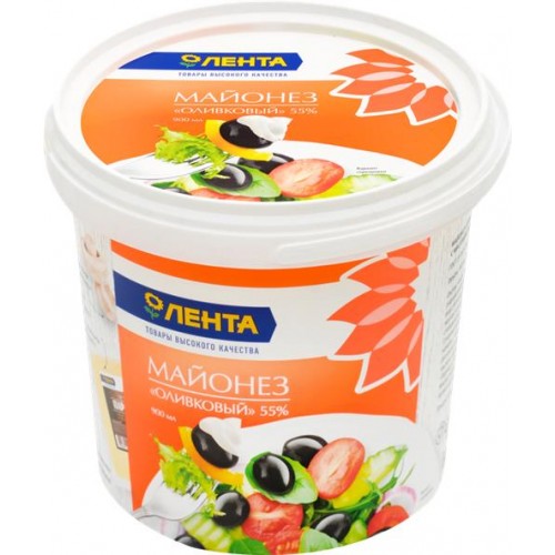 Майонез ЛЕНТА Оливковый 55%, 900мл в магазинах Лента