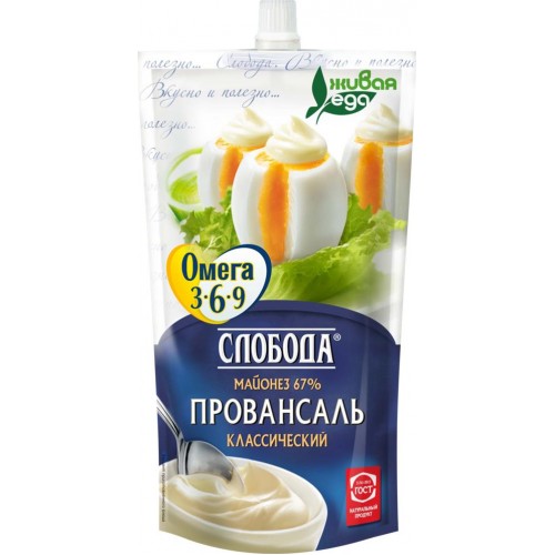 Майонез СЛОБОДА Классический Провансаль Омега 3-6-9 67%, 400мл в магазинах Лента