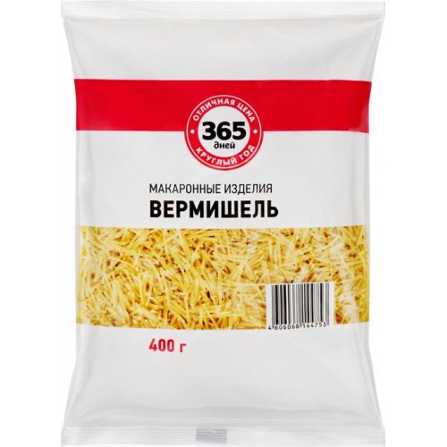 Макароны 365 ДНЕЙ Вермишель паутинка, группа В высший сорт, 400г в магазинах Лента