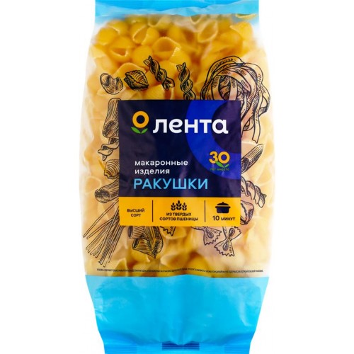 Макароны ЛЕНТА Ракушки группа А, высший сорт, 450г в магазинах Лента