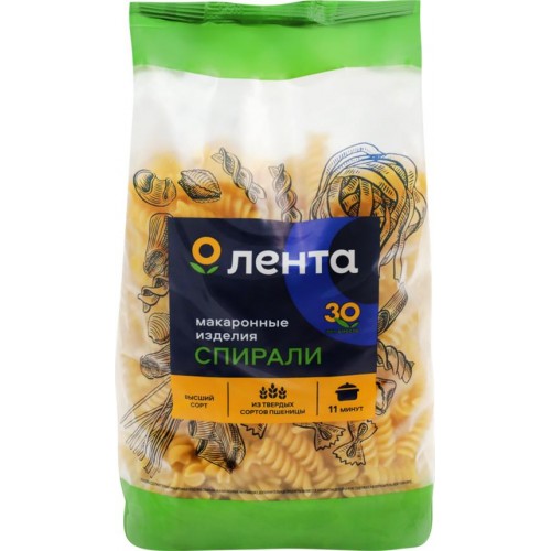 Макароны ЛЕНТА Спирали группа А, высший сорт, 450г в магазинах Лента