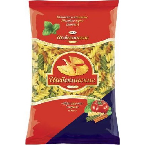 Макароны Шебекинские №366.5 Спирали Три цвета 450г в магазинах Магнит