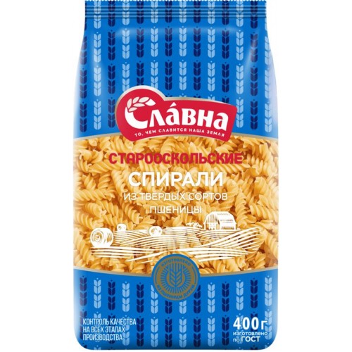 Макароны СЛАВНА Спирали, группа А высший сорт, 400г в магазинах Лента