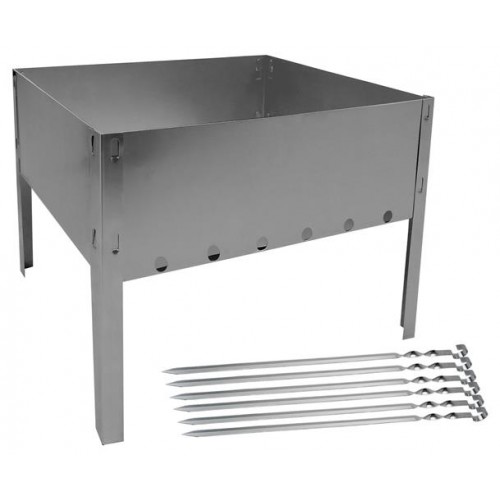 Мангал – углеродистая сталь, шампуры – нержавеющая сталь.