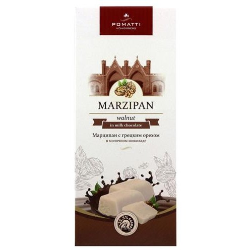Марципан POMATTI с грецким орехом в молочном шоколаде, 85 г (kastd) в магазинах Ашан