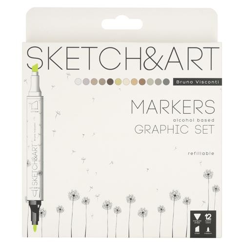 Маркеры BrunoVisconti Graphic set для скетчинга, 12 цветов (kastd) в магазинах Ашан
