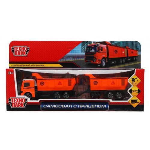 Машина металлическая Технопарк Самосвал с прицепом, 20 см (kastd) в магазинах Ашан