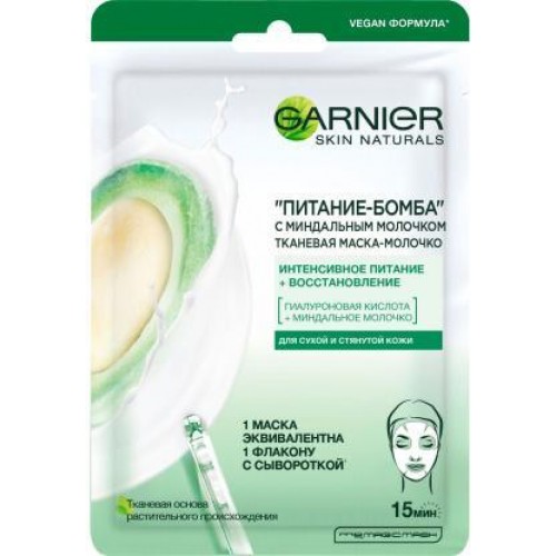 Маска для лица Garnier Питание-Бомба тканевая с миндальным молочком 32г в магазинах Магнит