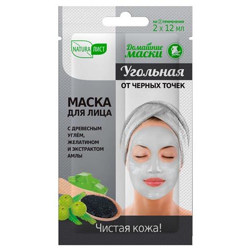 Маска для лица Натуралист Домашние маски угольная от черных точек, 2*12 мл (kastd) в магазинах Ашан