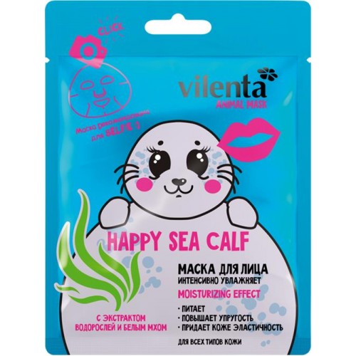 Маска для лица VILENTA Animal Mask Happy Sea Calf с экстрактом водорослей и белым мхом, 28мл в магазинах Лента