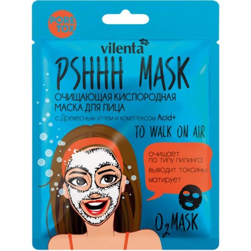 Маска для лица VILENTA Pshhh Mask To Walk On Air очищающая, кислородная с древесным углем и комплексом Acid+, 25мл в магазинах Лента