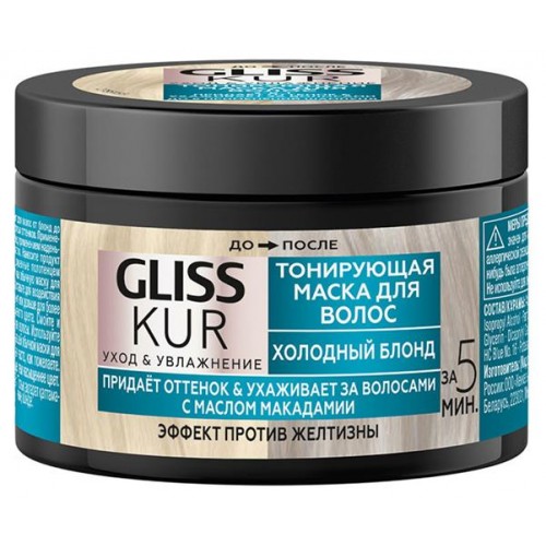 Маска тонирующая для волос 2-в-1 Gliss Kur Холодный блонд ухаживает за волосами с маслом макадами против желтизны, 150 мл (kastd) в магазинах Ашан