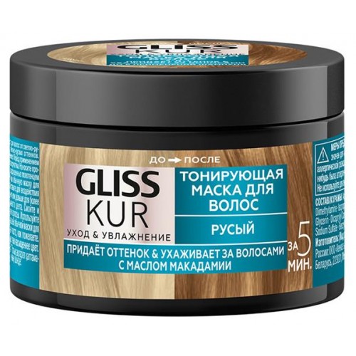 Маска тонирующая для волос 2-в-1 Gliss Kur Русый ухаживает за волосами с маслом макадами, 150 мл (kastd) в магазинах Ашан