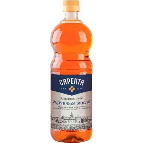 Масло горчичное Сарепта нерафинированное объемом 1 литр производится из семян горчицы, и традиции его производства сохраняются на территории российского Поволжья уже на протяжении 18 века. Метод изготовления заключается в холодном отжиме и однократном прессовании семян.