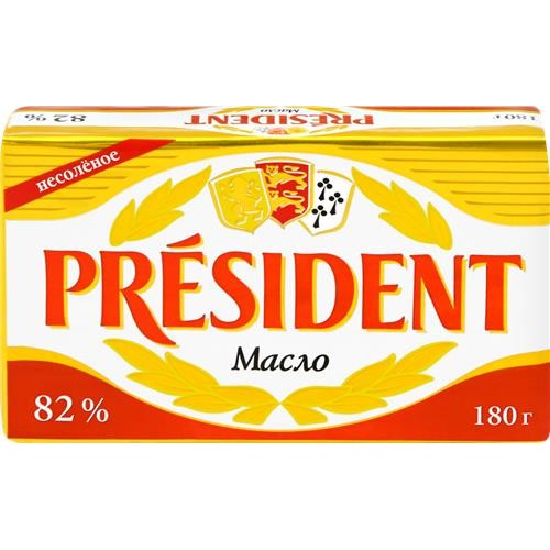 Масло кислосливочное PRESIDENT несоленое 82%, без змж, 180г в магазинах Лента