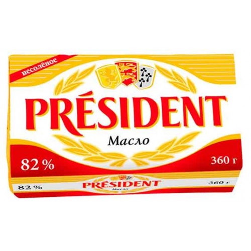 Масло кислосливочное President несоленое 82% БЗМЖ, 360 г (kastd) в магазинах Ашан
