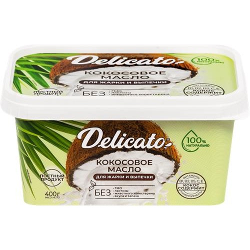 Масло кокосовое DELICATO рафинированное отбеленное дезодорированное, 400г в магазинах Лента