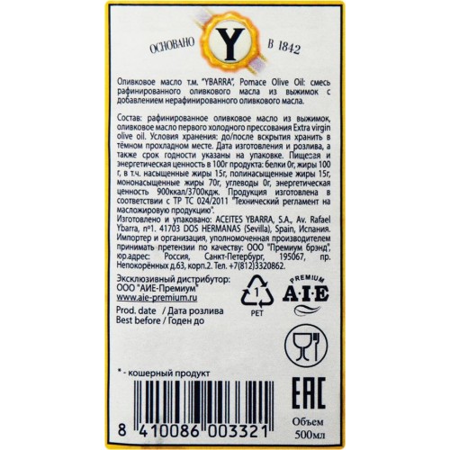 Масло оливковое YBARRA Pomace, 500мл в магазинах Лента