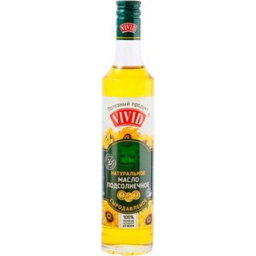Масло подсолнечное Vivid нерафинированное объемом 500 мл изготовлено путем первого холодного отжима, без химической и термической обработки. Благодаря этому, продукт сохраняет все полезные витамины и минералы, необходимые для поддержания здоровья человека.