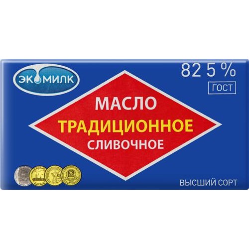 Масло сливочное ЭКОМИЛК Традиционное несоленое 82,5%, без змж, 180г в магазинах Лента