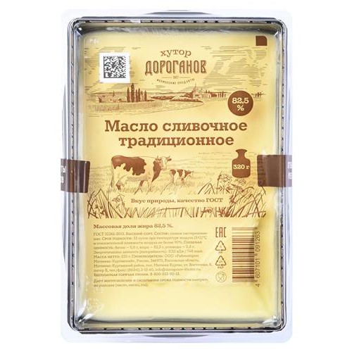 Масло сливочное Хутор Дороганов Традиционное 82,5% БЗМЖ, 320 г (kastd) в магазинах Ашан