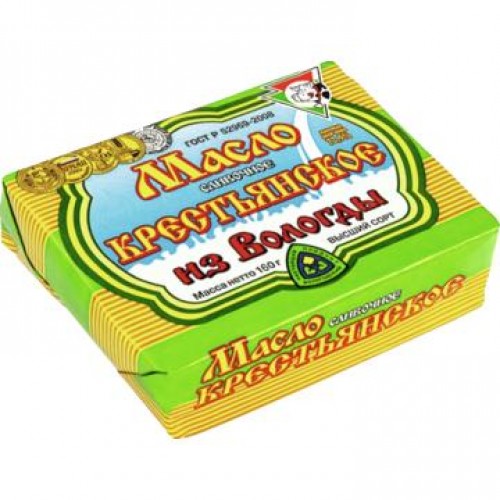 Масло сливочное ИЗ ВОЛОГДЫ крестьянское, 72.5%, 160г в магазинах Авоська
