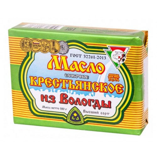 Масло сливочное Из Вологды Крестьянское 72,5%, 180 г (kastd) в магазинах Ашан