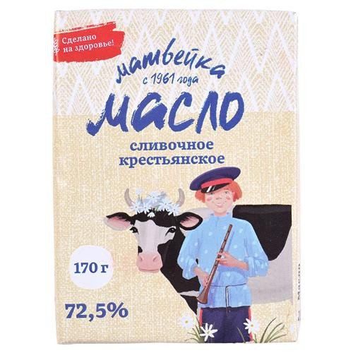 Масло сливочное Матвейка Крестьянское 72.5% БЗМЖ, 170 г (kastd) в магазинах Ашан