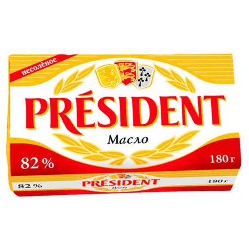 Масло сливочное President несоленое 82%, 180 г (kastd) в магазинах Ашан