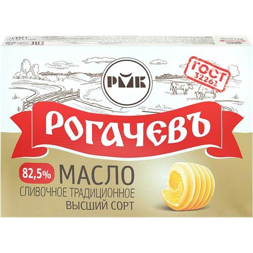 Масло сливочное РОГАЧЕВЪ Традиционное 82,5%, без змж, 180г в магазинах Лента