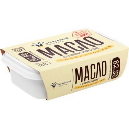 Масло сливочное Сернурский Традиционное 82,5% 180 г - это высококачественный продукт, изготовленный из натуральных пастеризованных сливок, без использования консервантов, ГМО и вредных веществ. Благодаря содержанию 82,5% сливочного масла, данный продукт является идеальным источником полезных жиров для взрослых и детей. Он особенно рекомендован для людей, страдающих от болезней желудочно-кишечного тракта и гипертонии.