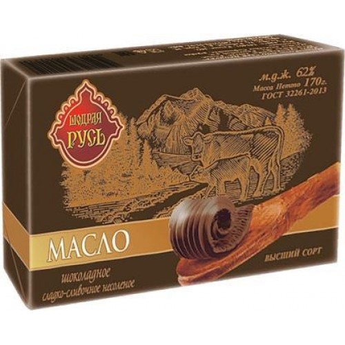 Масло сливочное Щедрая Русь шоколадное 62% 170г в магазинах Магнит