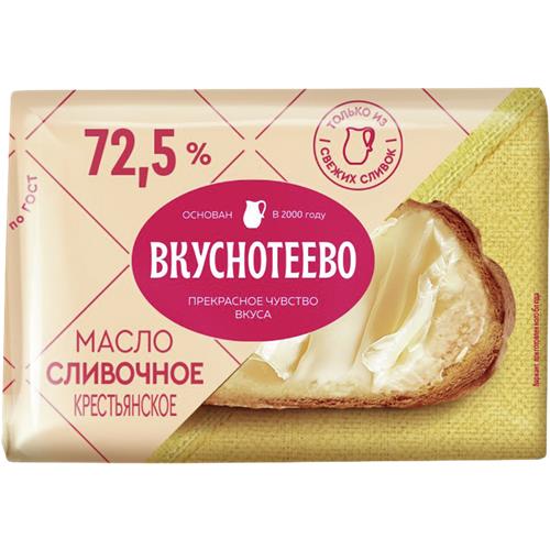 Масло сливочное ВКУСНОТЕЕВО крестьянское, 72.5%, 180г в магазинах Авоська