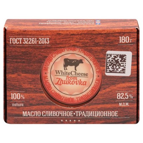 Масло сливочное WhiteCheese from Zhukovka Традиционное 82,5%, 180 г (kastd) в магазинах Ашан