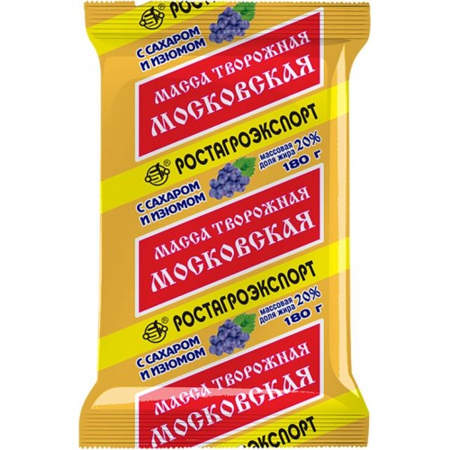 Масса творожная РОСТАГРОЭКСПОРТ Московская с сахаром и изюмом 20%, без змж, 180г в магазинах Лента