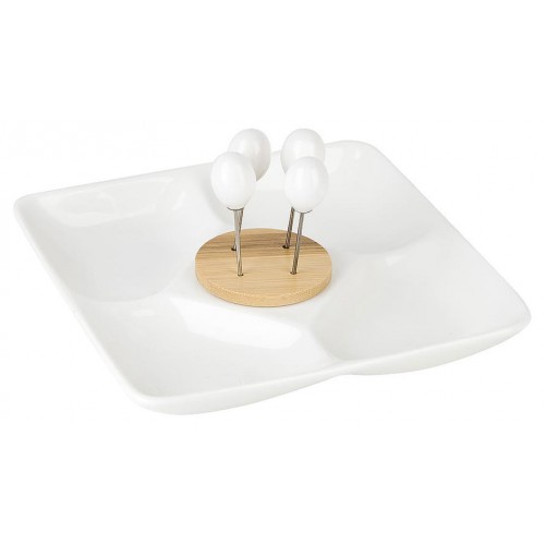 Менажница Nouvelle Home 4-х секционная со шпажками Naturel, 20х20х9 см (kastd) в магазинах Ашан