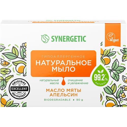Мыло туалетное SYNERGETIC Масло мяты и апельсин, 90г в магазинах Лента