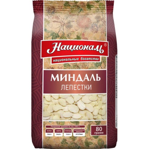 Миндаль кондитерский НАЦИОНАЛЬ лепестки, 80г в магазинах Лента