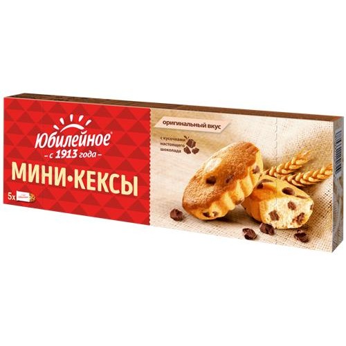 Мини-кексы ЮБИЛЕЙНОЕ с кусочками молочного шоколада, 140г в магазинах Лента