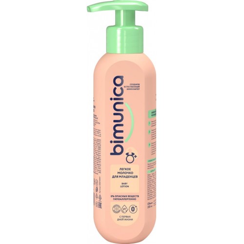 Уникальное молочко BIMUNICA, доступное эксклюзивно в , разработано специально для самой чувствительной кожи младенцев. Его нежная формула с маслом миндаля и пантенолом мгновенно увлажняет и успокаивает даже самую капризную кожу.
