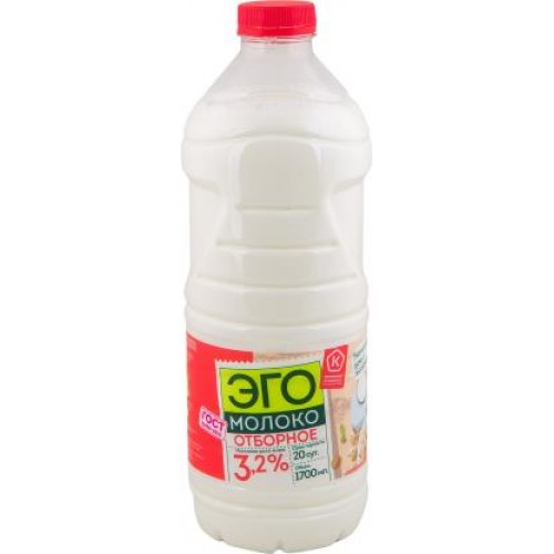 Молоко Эго Питьевое пастеризованное 3.2% 1.7л