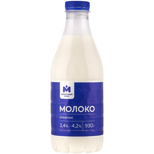 Молоко отборное 3.4-4.2% Молочный знак, 930мл в магазинах Перекресток