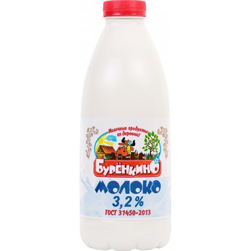 Молоко пастеризованное БУРЕНКИНО 3,2%, без змж, 900мл в магазинах Лента