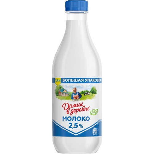 Молоко пастеризованное ДОМИК В ДЕРЕВНЕ 2,5%, без змж, 1400мл в магазинах Лента