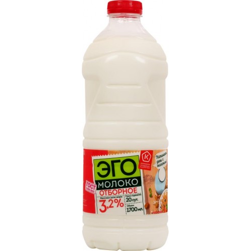 Молоко пастеризованное ЭГО 3,2%, без змж, 1750г в магазинах Лента