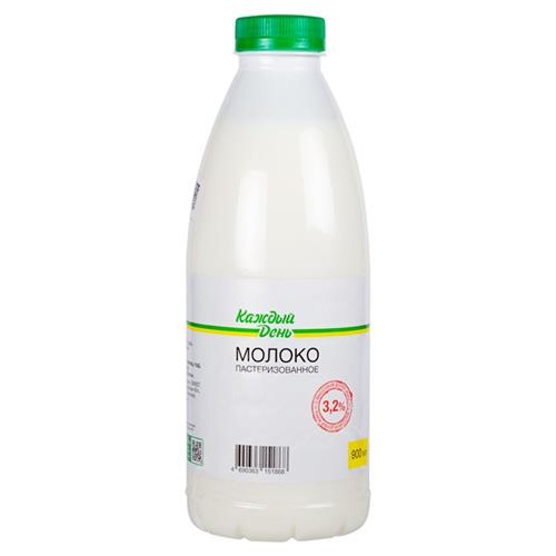 Молоко пастеризованное Каждый день питьевое 3,2% БЗМЖ, 0,9 л (kastd) в магазинах Ашан