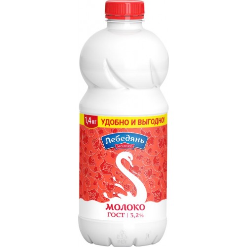 Молоко пастеризованное ЛЕБЕДЯНЬМОЛОКО 3,2%, без змж, 1400г в магазинах Лента
