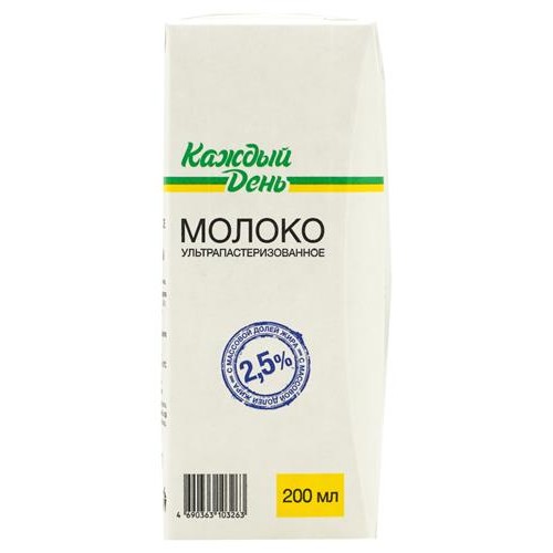 Молоко питьевое Каждый день ультрапастеризованное 2,5% БЗМЖ, 200 мл (kastd) в магазинах Ашан