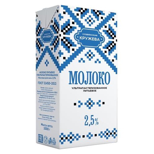 Молоко питьевое Славянские кружева ультрапастеризованное 2,5% БЗМЖ, 973 мл (kastd) в магазинах Ашан