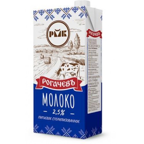 Товар на полке: Молоко Рогачёв стерилизованное питьевое 2.5%, 1 литр